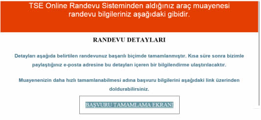 - Randevu bilgileri mail ile iletilmektedir. Başvurunuzu mailinize gelen randevu detayları bilgisinden ya da aşağıdaki başvuru tamamlama ekranı linlinden tamamlayabilirsiniz.