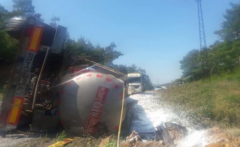 Bursa’da faciadan dönüldü! Metanol yüklü tanker devrildi!